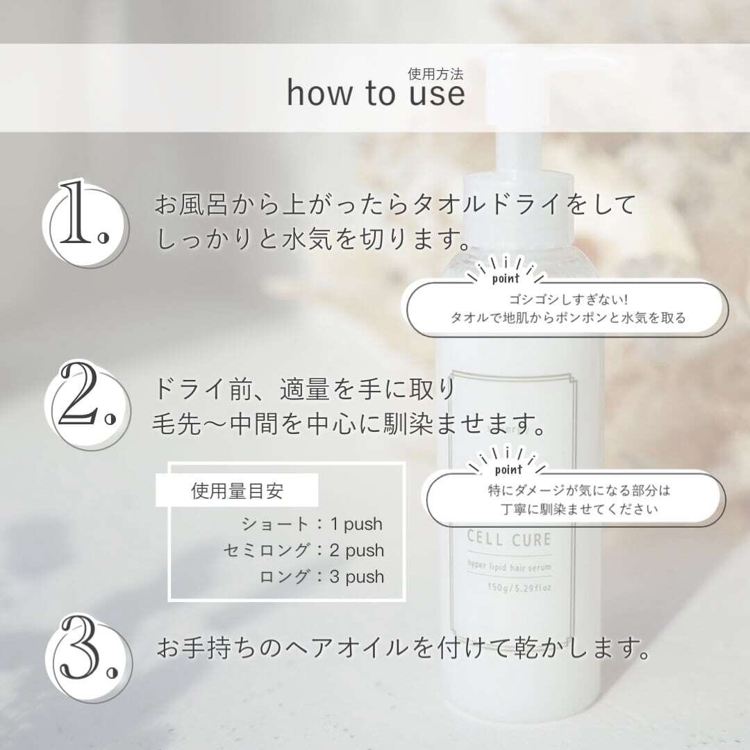 濡れた髪にミルクつけて馴染ませそのまま上からオイルをつけて乾かします。